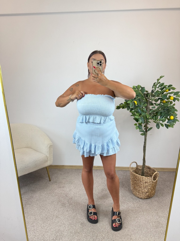 W SKŁAD KOMPLETU WCHODZĄ SPÓDNICO-SPODENKI I TOP