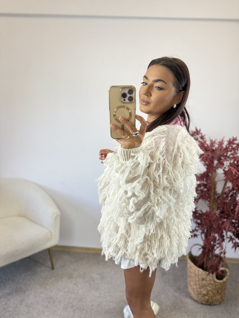 SWETER FRINGE ECRU